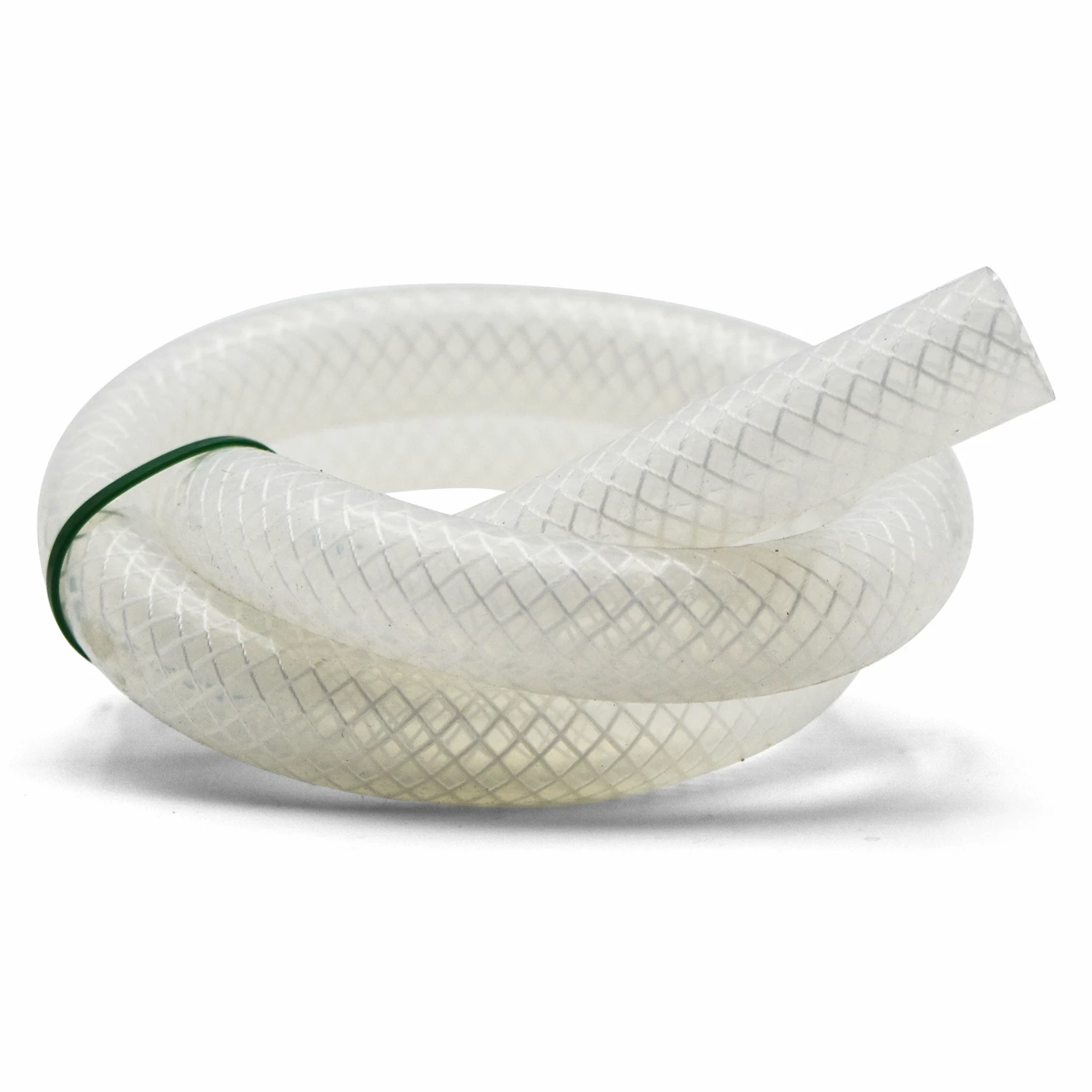- Open mesh polyester braiding incorporated within the wall of silicone tubing