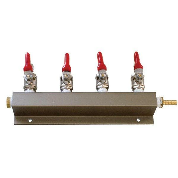 This CO2 manifold comes with four 1/4″ barbed shutoff valves and a barbed CO2 inlet for more permanent installations where the lines do not need to be removed. 1/4″ barbs work with the more common 1/4″ ID gas line tubing. Corrosion-resistant nickel-plated brass manifold has 1/4″ barbed shut-off valves with an integral check valve to prevent backflow of gas or liquid.