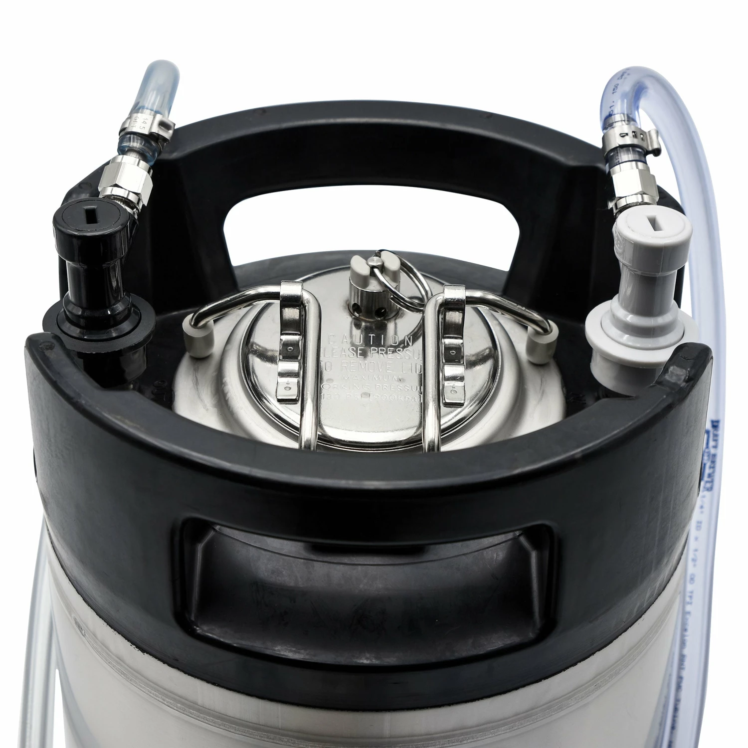 Simply sanitize and purge your serving vessel, open the PRV, and you will have a closed liquid to liquid transfer ready for wherever your adventure takes you!
