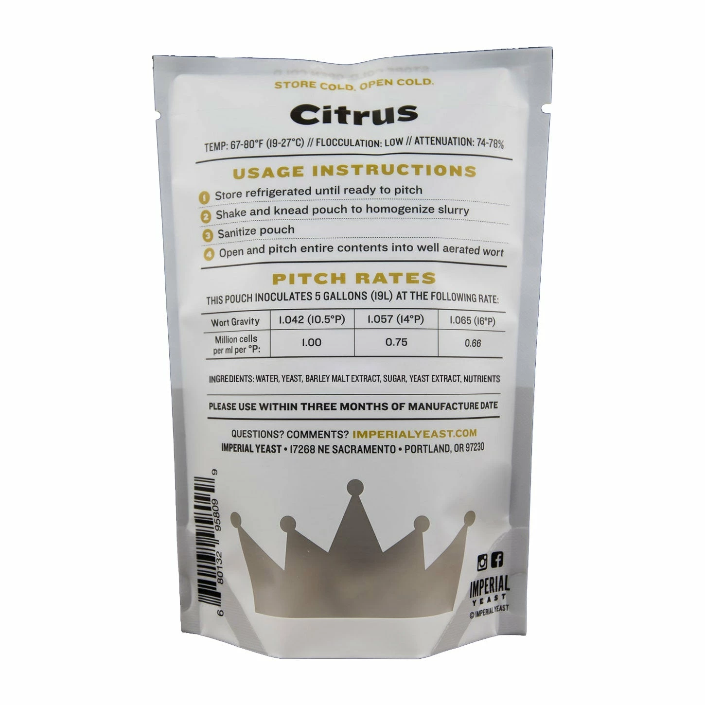 Citrus yeast cranks out orange and lemon aromas along with tropical fruit. Use this strain at high temps for increased ester production. A wild saccharomyces strain, it will get a bit funky without the concerns of a brettanomyces strain.