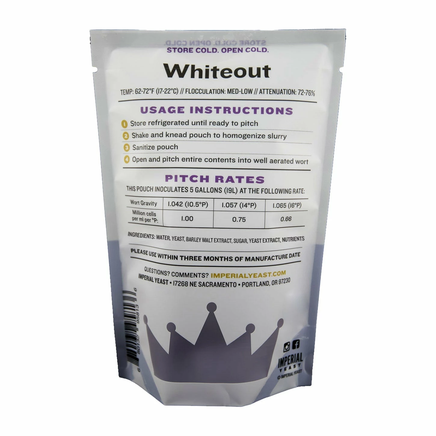 Whiteout yeast produces an excellent balance of spicy phenolic character and esters. Along with the necessary aromatics, this strain produces a significant amount of acidity which is perfect for Belgian wits and other light colored Belgian ales. Whiteout can be flocculent during fermentation, then become non-flocculent at the end. This may lead to slower than normal fermentation.