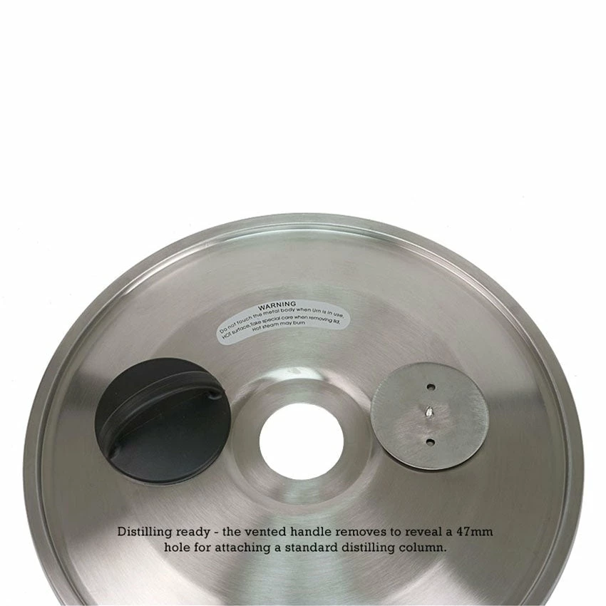Mash and Boil Series 2 also comes distilling ready. The included lid is T500 distilling ready and compatible with any of the Still Spirits Turbo 500 condensers. The vented lid should not be clamped while brewing, and should be off when boiling. Only clamp the lid when distilling to avoid steam burns.