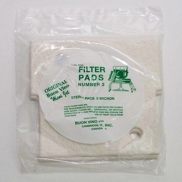 Three pack of #3 super sterile (approx. 0.5 micron) filter pads for the Buon Vino Mini Jet. For best results, filter sequentially – first with #1 pads, then #2, and finally with #3.