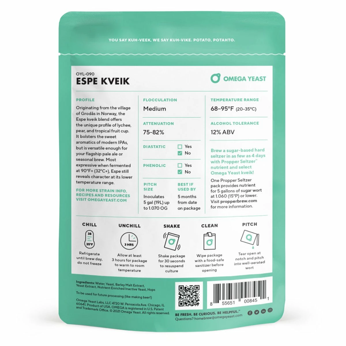 Originating from the village of Grodås in Norway, Espe offers the unique profile of lychee, pear, and tropical fruit cup. The strain bolsters the sweet aromatics of modern IPAs but is versatile enough for your flagship pale ale or seasonal brew. Espe is most expressive when fermented at 90°F+ (32°C+), but still reveals its character at lower ale-pitching temperatures.