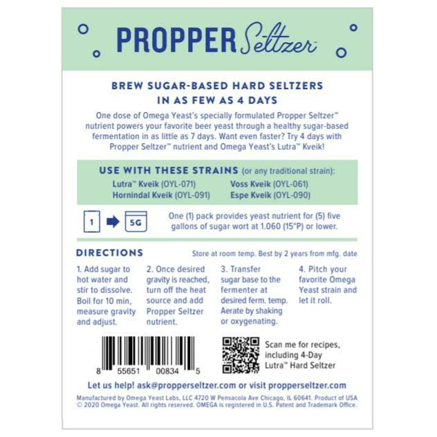 One dose of Omega Yeast’s specially formulated gluten-free Propper Seltzer™ nutrient powers your favorite beer yeast through a healthy sugar-based fermentation in as little as 7 days. Want even faster? Try 4 days with Propper Seltzer™ nutrient and Omega Yeast’s Lutra™ Kveik! Depending on yeast selection and fermentation temperature, fermentation can take anywhere between 2-7 days. For the fastest results, ferment with Omega Yeast’s kveik strains at high temps (80-96°).