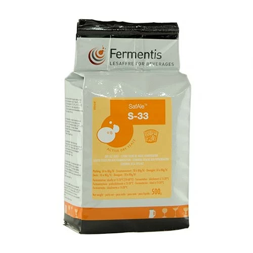SafAle S-33 is a fruity driven strain that gives a high mouthfeel and body to the beer. Ideal for Belgian Ales (Blond, Dubbel, Tripel, Quadrupel Styles) and strong English ales (ex. Imperial Stouts). It is also ideal for New England IPA’s. Yeast with a medium sedimentation: forms no clumps but a powdery haze when resuspended in the beer.